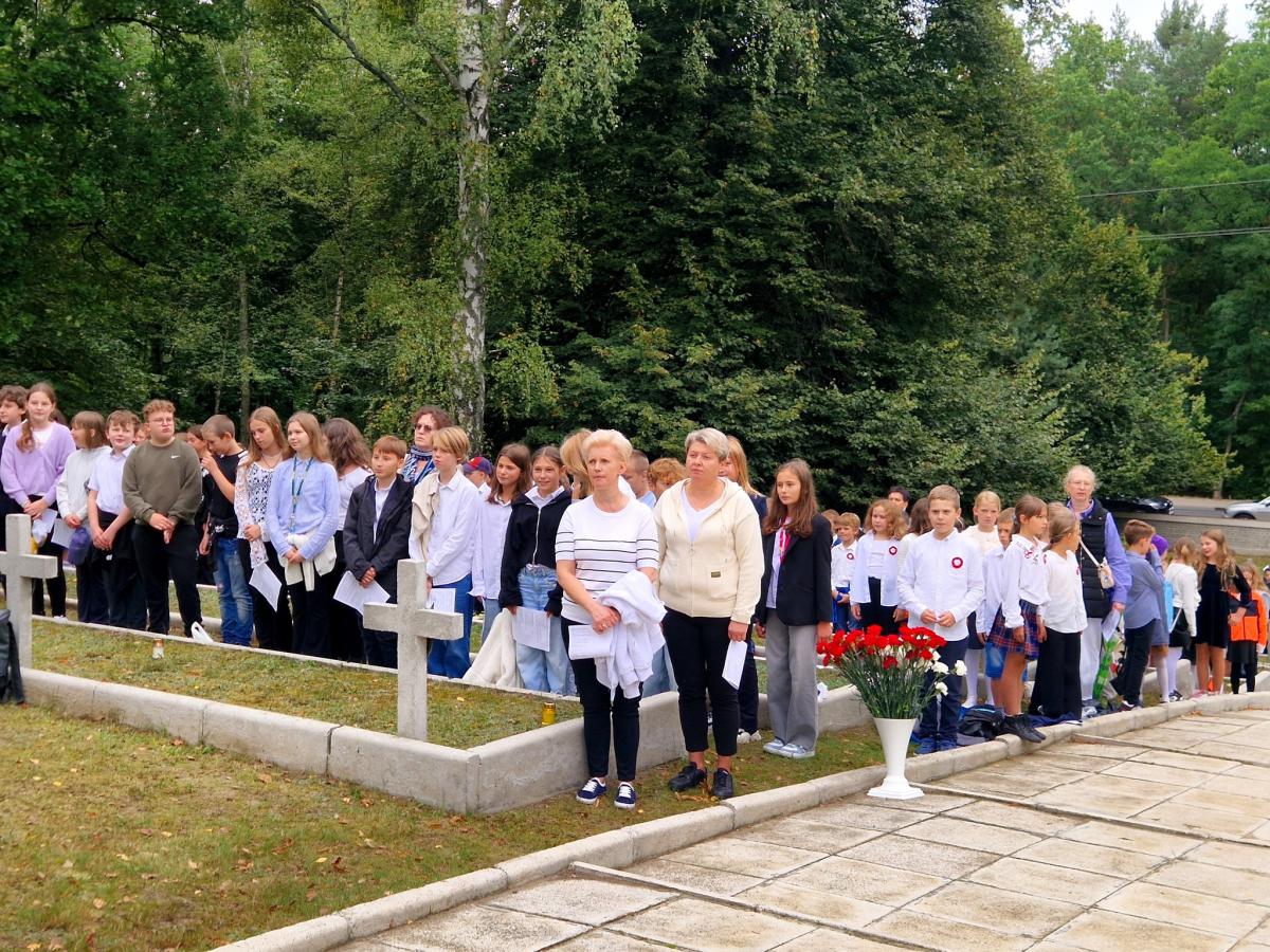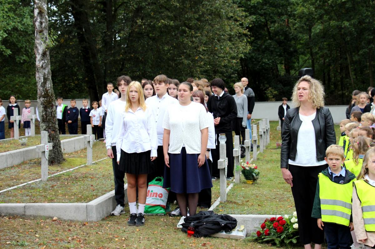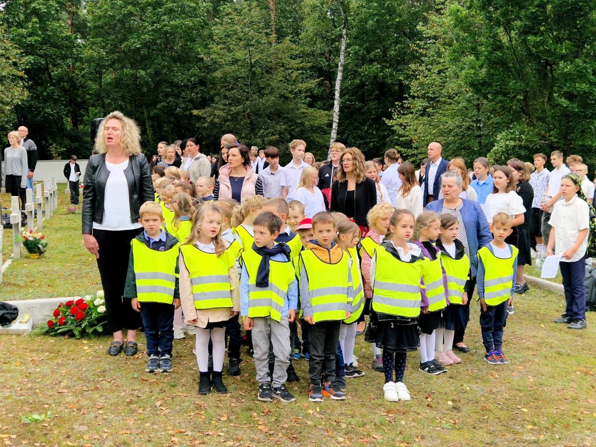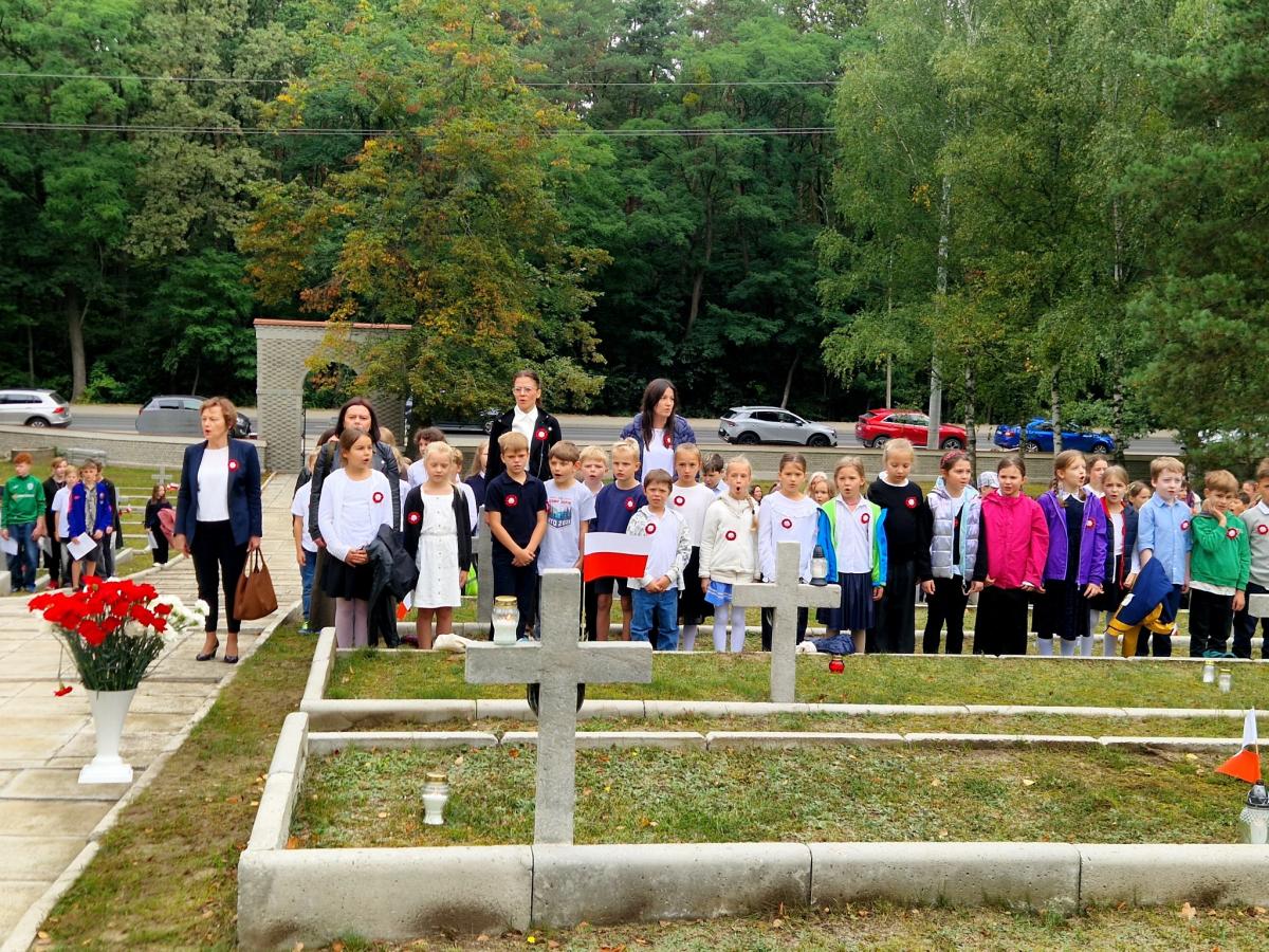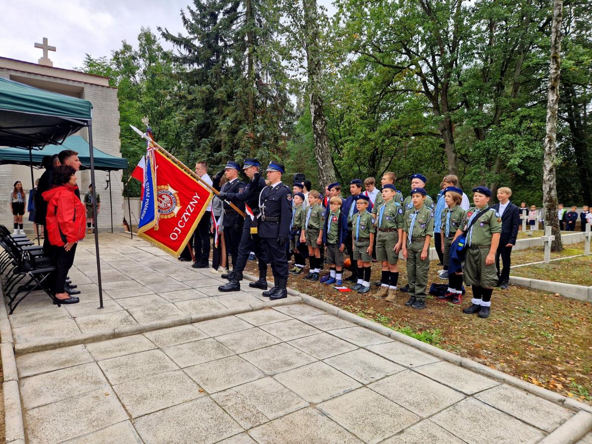 Galeria zdjęć z uroczystości 19 września 2025 roku na Cmentarzu Wojennym w Laskach. Wśród uczestników władze samorządowe, harcerze, strażacy ze sztandarami, dzieci i nauczyciele z lokalnych placówek. Widoczne momenty odczytania Apelu Poległych oraz składania wieńców i wiązanek pod pomnikiem, podczas wzruszającej ceremonii upamiętniającej.